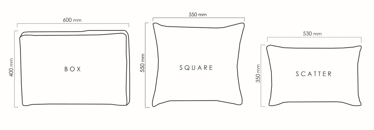 The cushions are made up into a generous box size with a gusset, or two standard scatter sizes.