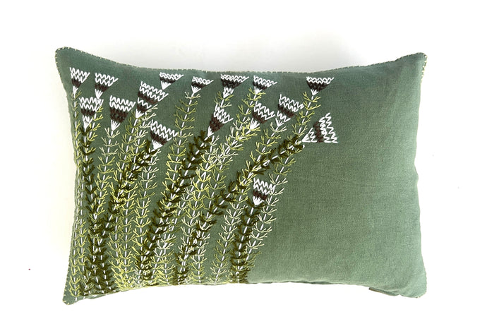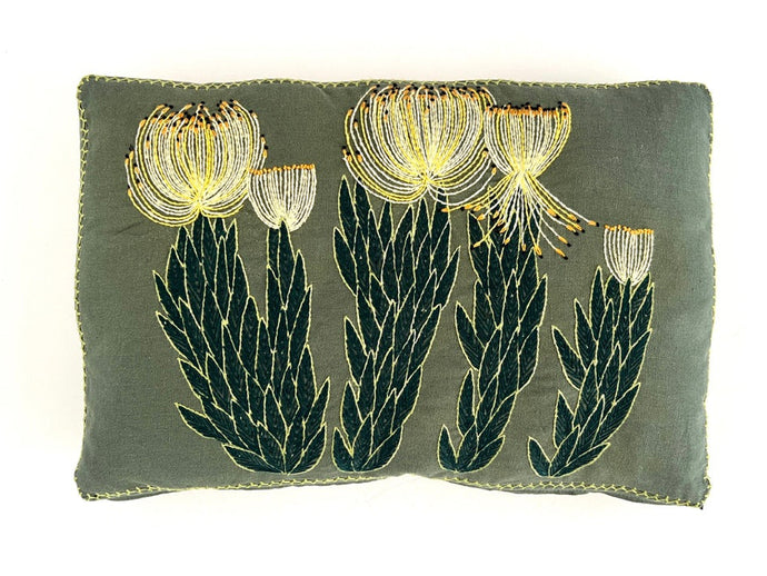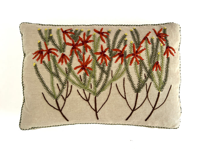 Hand embroidered Fynbos species, currently available in our showroom.