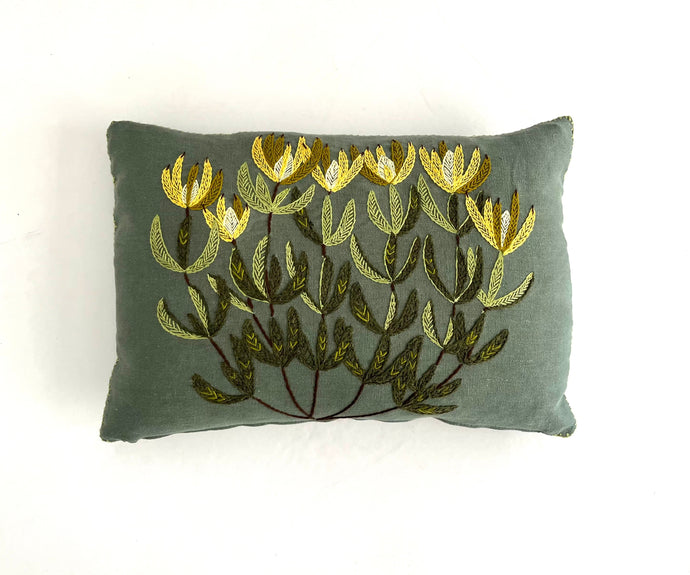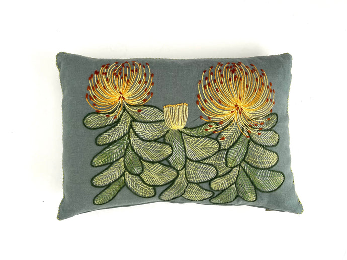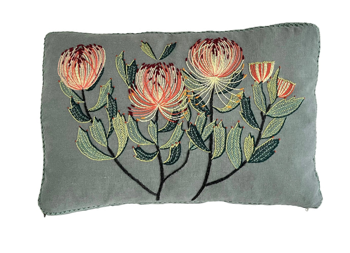 The cushions on our catalogue are made and hand-embroidered to order so designs may differ from photos.